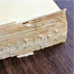 Over time, the pages started to break at the point where they drape over the next page (I can’t remember the term for this exactly, my bad). This is because the movement of the spine is restricted, so the paper is doing ALL the work, and as a result it has weakened over time. This particular book suffered much less than others I have seen; when you find a brittle 19th century book that has been oversewn in this way, it’s usually been reduced to a pile of single sheets from breakage.