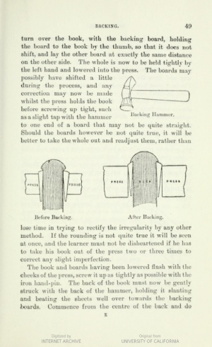 - "The process of shaping a ridge or shoulder on each side of the spine of a text block prior to the application of the spine lining material"<ref name="Etherington">Roberts, Don., et al. Bookbinding and the Conservation of Books : a Dictionary of Descriptive Terminology. Library of Congress : For Sale by the Supt. of Docs., U.S. G.P.O., 1982.</ref>